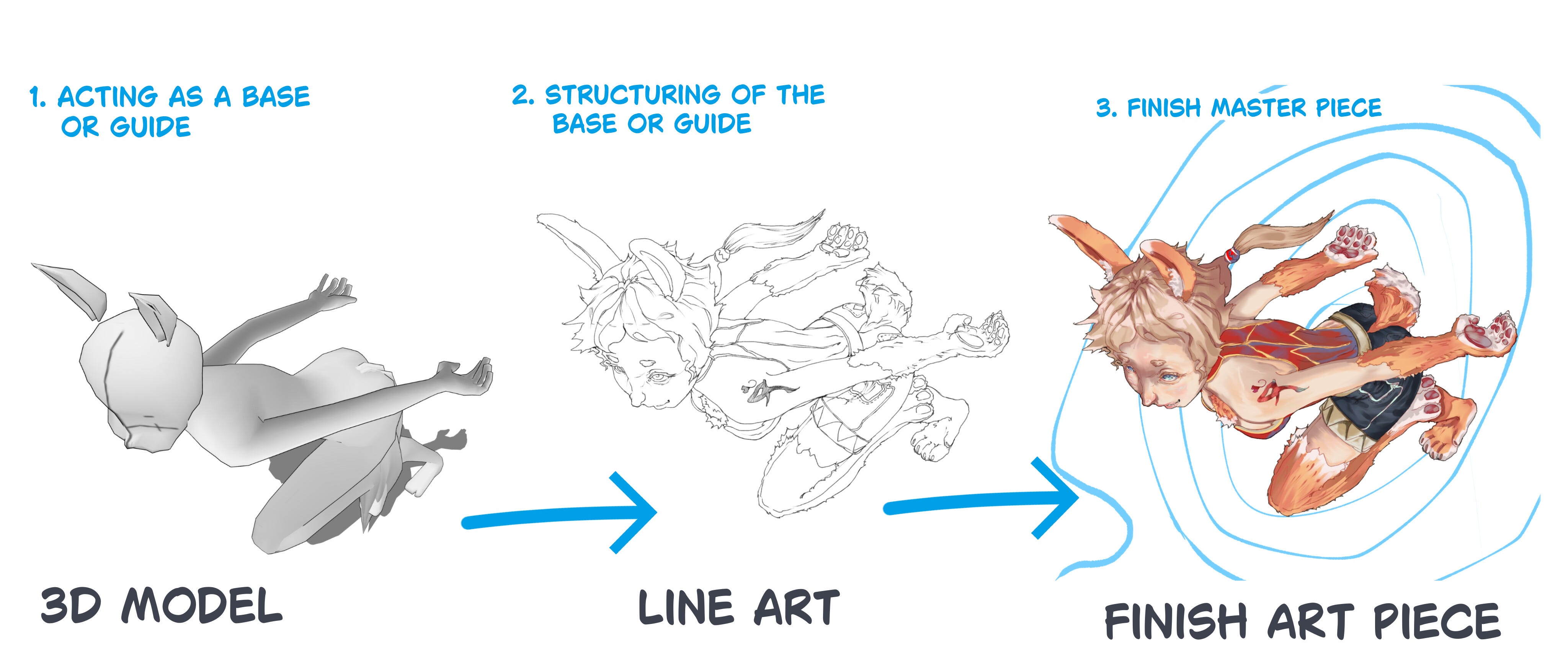 With 3D models, you can pose and manipulate them and put them in different angles to assist in your drawing. It’s like using those wooden mannequins in art classes, but digitally.
